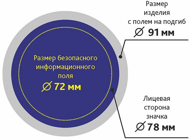 Размер изделия с полем на подгиб: диаметр 91 мм;